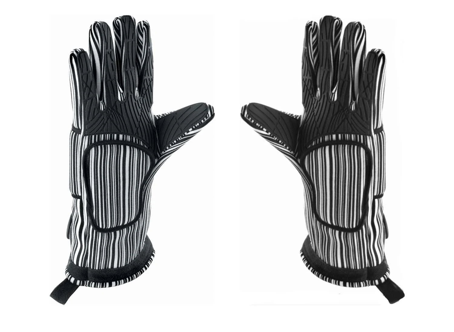 These gloves are made of cotton, which is a material that is not only lightweight but also comfortable and pleasant to wear. The different lines in the gloves’ surface provide a stylish and original look that cooks appreciate. The zone that covers the palm of your hand is, however, made of silicione, which is a robust material that give the gloves a non-slip grip that lets you hold and grap your pans and pots in all safety.